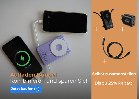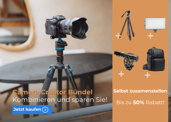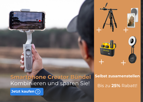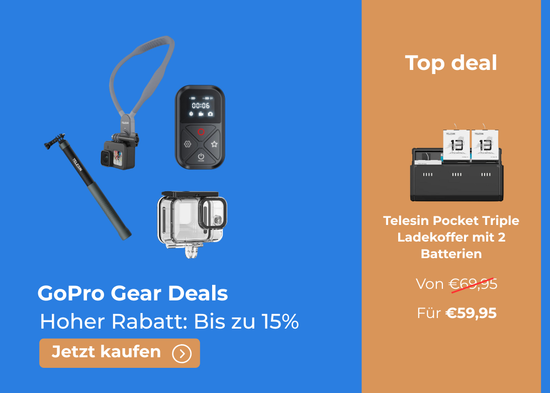 Sie erhalten standardmäßig 15 % Rabatt auf eine große Auswahl. Zusätzlich erhalten Sie weitere 10 % Rabatt, wenn Sie zwei oder mehr Produkte bestellen. Dieser Rabatt wird automatisch im Warenkorb abgezogen. Um Ihnen die Einrichtung zu erleichtern, haben wir vier verschiedene Pakete zusammengestellt: ein Ladepaket, ein Kamerazubehörpaket, ein Smartphone-Creator-Paket und ein GoPro-Zubehörpaket.