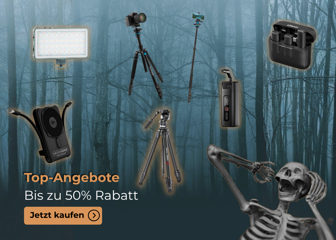 Halloween ist die perfekte Zeit, um deiner Kreativität freien Lauf zu lassen. Egal, ob du ein Gruselvideo, ein gruseliges Fotoshooting oder ein lustiges TikTok erstellst – mit den richtigen Tools werden deine Inhalte zum Gruseln. Entdecke unsere Tipps, schau dir inspirierende Videos an und kaufe das beste Zubehör für Licht, Ton und Stabilität. Freuen Sie sich bis zum 2. November über Halloween-Rabatte von bis zu 50 % auf ausgewähltes Foto- und Videozubehör!