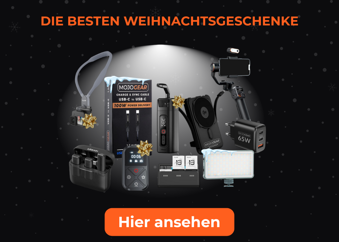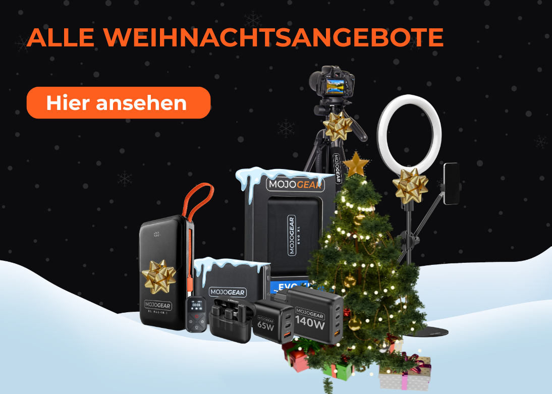 MOJOGEAR ist für seine hochwertigen Produkte bekannt, die speziell für Content-Ersteller entwickelt wurden. Egal ob Vlogger, Filmemacher, Fotograf oder Influencer: Auf die Langlebigkeit und Leistungsfähigkeit unseres Zubehörs können Sie sich verlassen. In der Vorweihnachtszeit bieten wir Ihnen nicht nur tolle Rabatte, sondern auch: