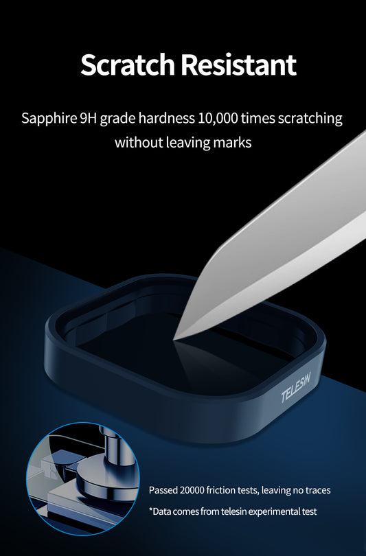 Die Telesin-Filter lassen sich einfach an deiner GoPro anbringen und wieder abnehmen. Das Klicksystem sorgt für einen sicheren Sitz, sodass du dir keine Sorgen machen musst, dass sich die Filter während des Filmens lösen. Dank ihres kompakten Designs bleiben die Filter unauffällig und beeinträchtigen die Funktionalität deiner GoPro nicht. Langlebige Qualität: Die Filter bestehen aus robustem Glas, das klare Bilder gewährleistet und vor Kratzern schützt. Dies garantiert eine lange Lebensdauer, sodass Sie viele Jahre lang Freude an Ihren Filtern haben. Sie können sie ohne Bedenken in verschiedenen Umgebungen verwenden, von den Bergen bis zum Meer.