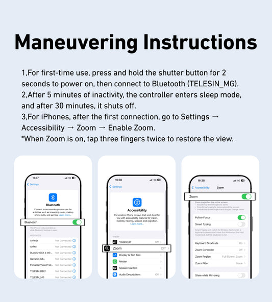 Dieser Handgriff ist mit mehreren Tasten für eine direkte Bedienung ausgestattet. Mit der speziellen Zoom-Taste können Sie stufenlos ein- und auszoomen, ohne den Bildschirm zu berühren. Eine separate Modus-Taste ermöglicht Ihnen den schnellen Wechsel zwischen Foto- und Videomodus, und der Auslöser funktioniert wie bei einer herkömmlichen Kamera für schnelle und stabile Aufnahmen.