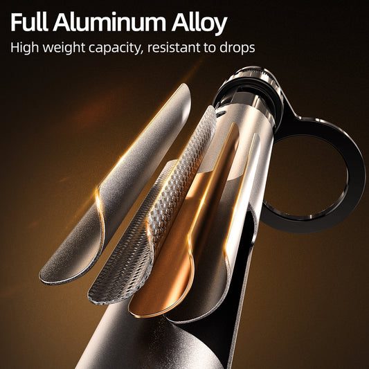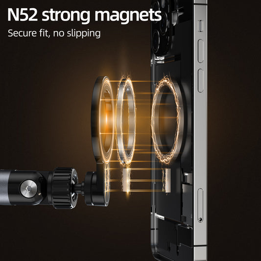 Mit der MagSafe-Halterung befestigen Sie ein iPhone (12 oder neuer) direkt magnetisch am Ständer. Für andere Telefone oder Hüllen ohne MagSafe ist ein separater MagSafe-Ring im Lieferumfang enthalten, den Sie auf Ihr Gerät kleben können. Dies gewährleistet eine schnelle und sichere Befestigung Ihres Smartphones ohne den Einsatz von Klemmen.