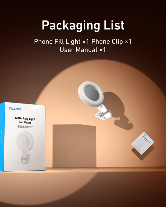 Dank des geringen Gewichts von 64 Gramm und der kompakten Abmessungen können Sie das Selfie-Licht problemlos überallhin mitnehmen. Der eingebaute 300mAh-Akku bietet eine Nutzungsdauer von mindestens 20 Minuten bei höchster Helligkeit. Sie können das Licht für den nächsten Gebrauch einfach wieder aufladen.