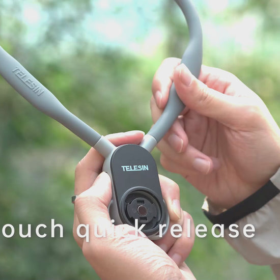 Der Telesin Neck Mount ist eine extra große Nackenhalterung, die dafür konzipiert ist, Ihre Action-Kamera stabil und freihändig zu tragen. Dank des Schnellverschluss-Systems und des magnetischen Verschlusses können Sie Ihre Kamera schnell befestigen und abnehmen. Das flexible, aber robuste Design sorgt für Komfort und die Möglichkeit, aus einer einzigartigen Ich-Perspektive zu filmen, ideal, um Ihre Aktivitäten ohne Hände aufzuzeichnen.