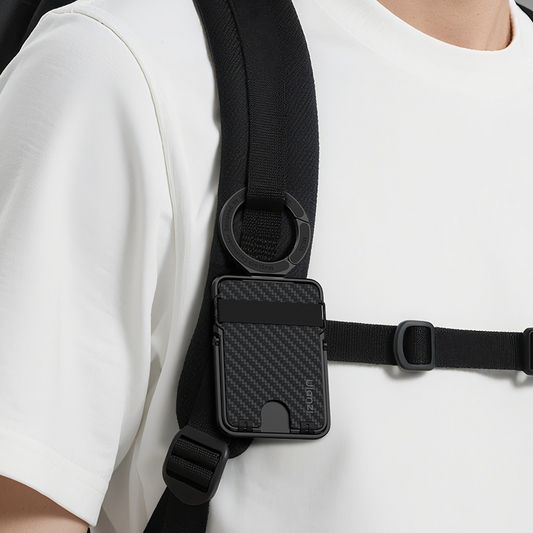 Der Kartenhalter ist für Smartphones mit MagSafe, wie neuere iPhones, oder Handys mit einem MagSafe-Ring konzipiert. Die starken Magnete sorgen für eine zuverlässige und feste Verbindung mit Ihrem Gerät. Sie können den Halter einfach für eine sichere Befestigung anklicken.