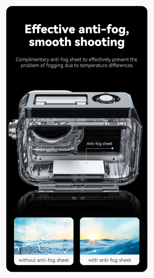 Mit diesem Unterwassergehäuse nehmen Sie Ihre Osmo Action Kamera sicher mit ins Wasser. Das Gehäuse ist bis zu einer Tiefe von 45 Metern wasserdicht, sodass Sie unbesorgt tief tauchen oder schnorcheln können. Es umschließt die Kamera vollständig und schützt sie vor dem Wasserdruck, damit Sie sich auf die besten Unterwasseraufnahmen konzentrieren können.